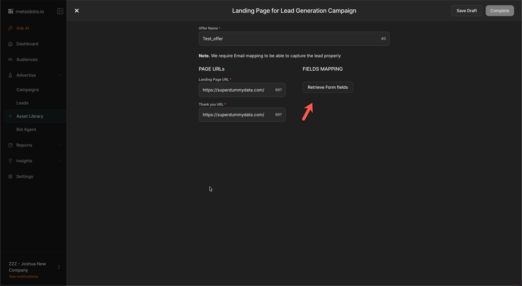 Enter your Landing Page URL and click Retrieve Form Fields: