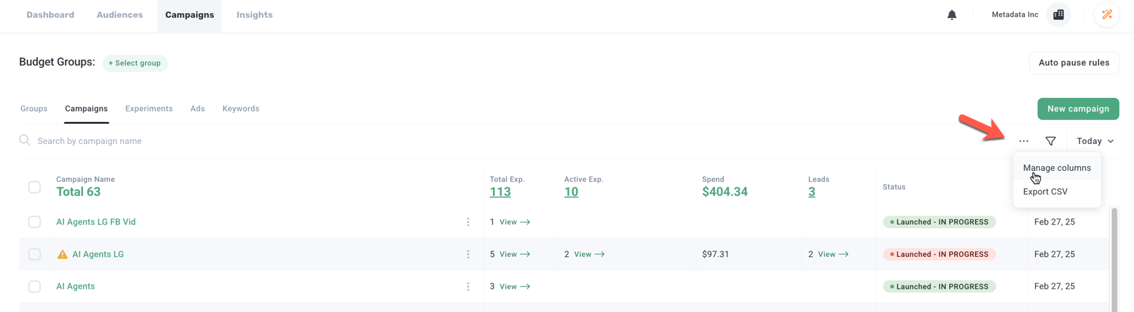 Customize the Campaigns View to quick highlight issues related to campaign performance.